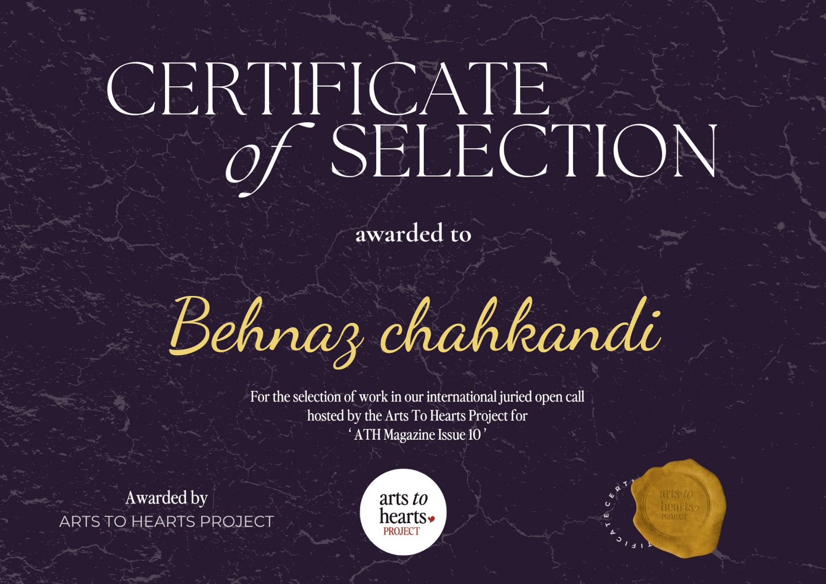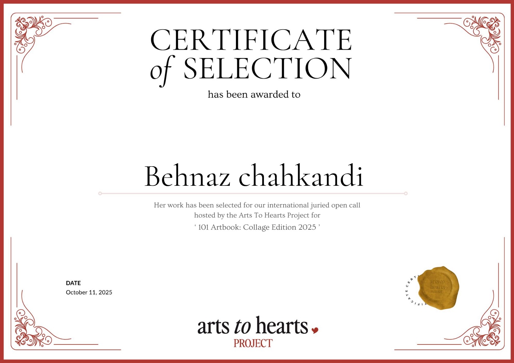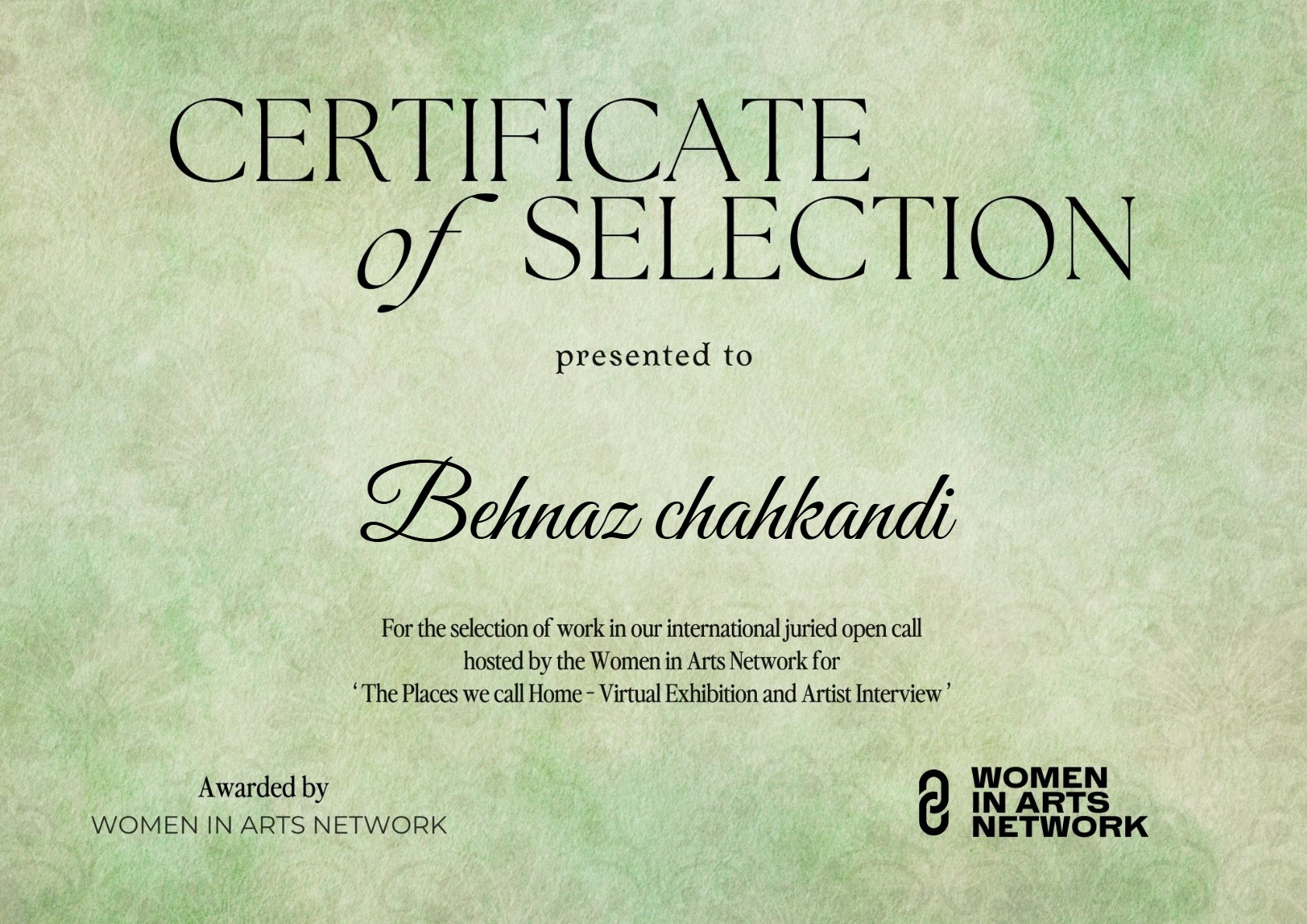 • Women in Art Network – Artist Profile (2024) Accepted artist member with an official professional profile on the Women in Art Network platform, highlighting Behnaz’s Afro-Persian identity and global vision.